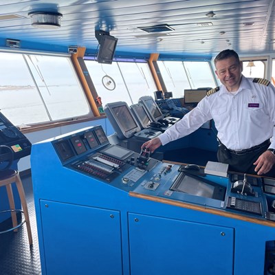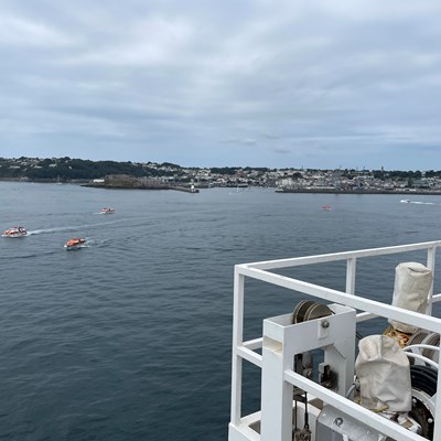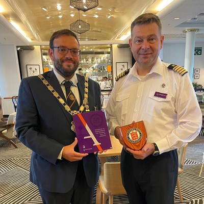 The ship’s captain hosted the event, with representatives from the States of Guernsey, VisitGuernsey, Guernsey Harbours, St Peter Port Constables and local shipping agents taking part in the exchange. The Guernsey delegation were given a brief tour of the ship and its facilities after exchanging plaques to mark the special occasion of the ship visiting St Peter Port in 2022 for the first time.