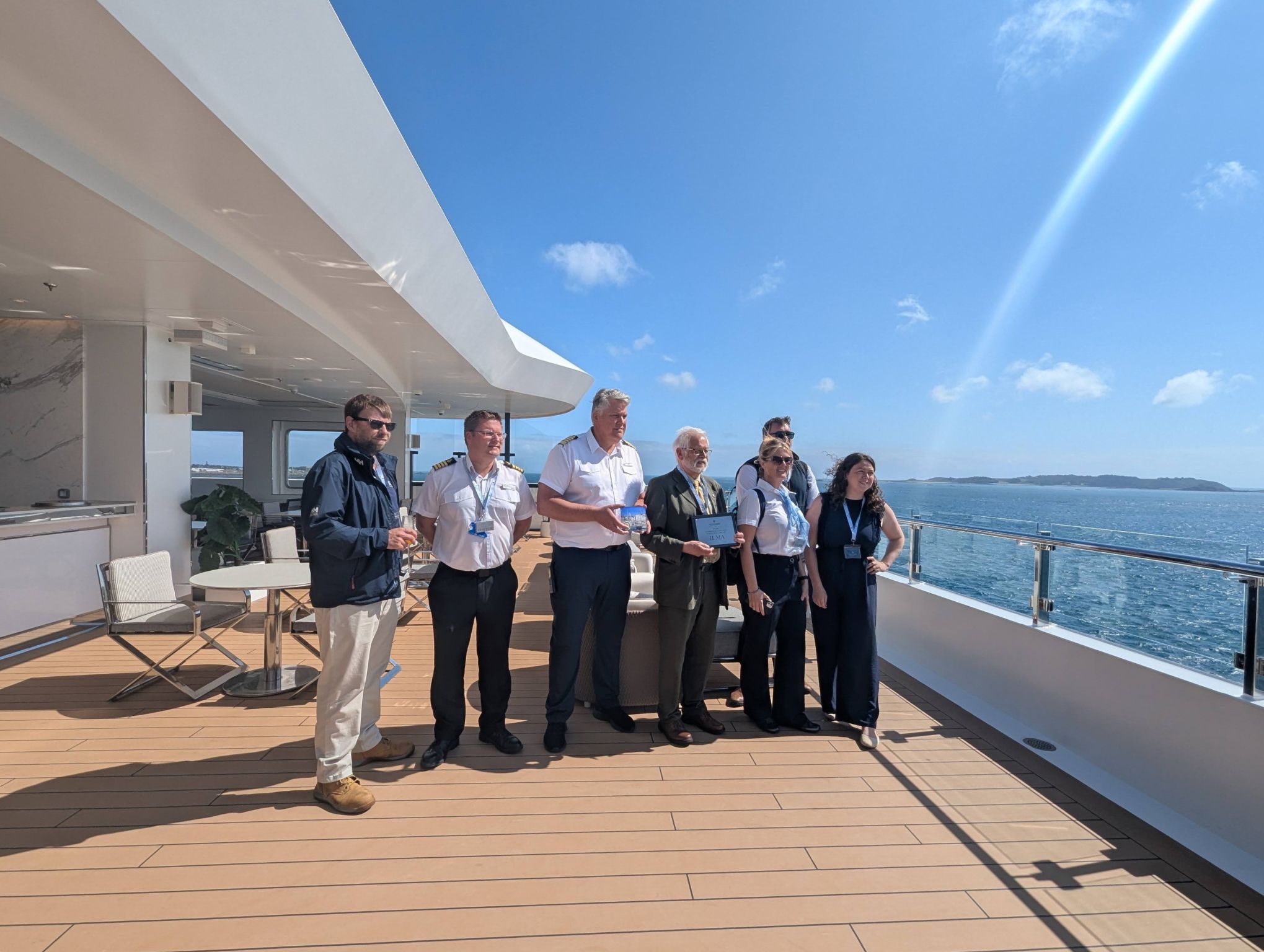 On 2 June, Guernsey welcomed Oceania Cruise Line's 'Vista' for the first time. To mark the occasion, representatives from VisitGuernsey, Guernsey Ports, CruiseGuernsey, St Peter Port Douzaine and Channel Seaways were welcomed aboard to exchange plaques.